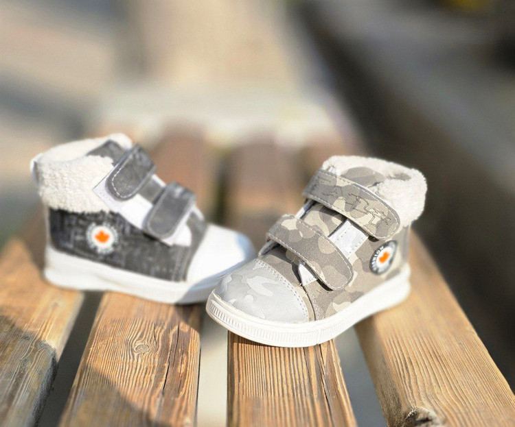 نیم بت بچه گانه دو چسبی خزدار پتینه رنگ طوسی و مشکی _ زیره pu