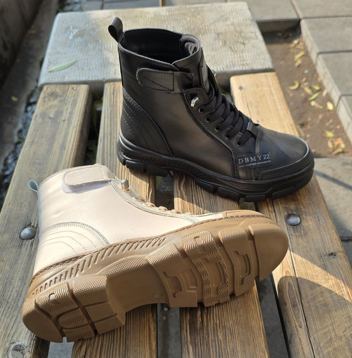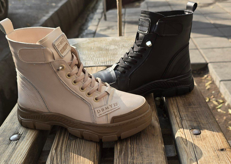 نیم بوت بندکشی چسبی دور دوخت ، زیره pu (مشکی و کرمی)