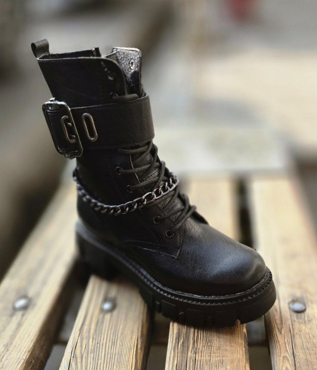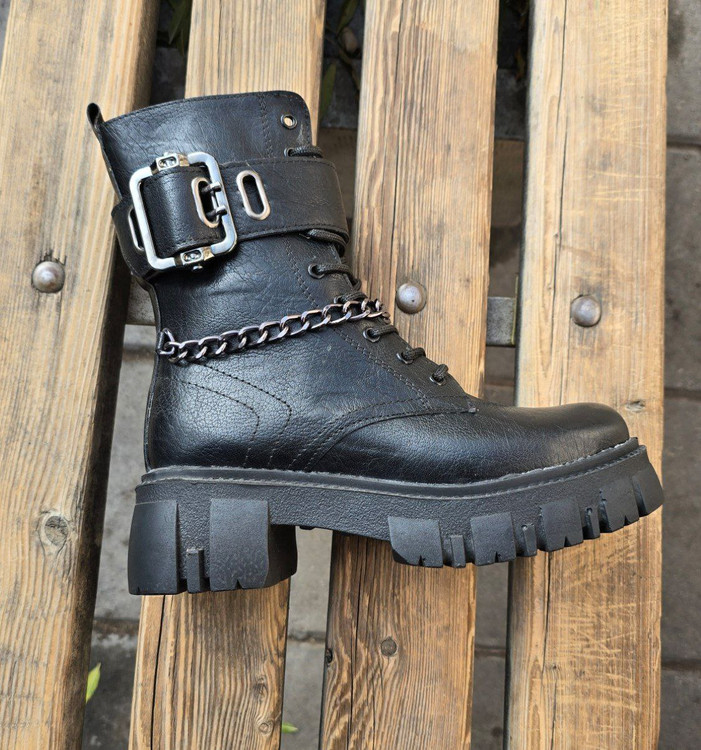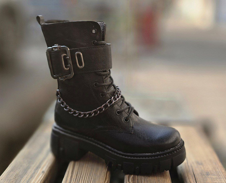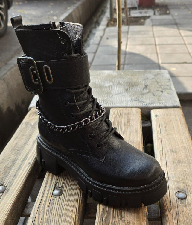 بوت زنجیردار مشکی بند و زیپ - زیره چانکی