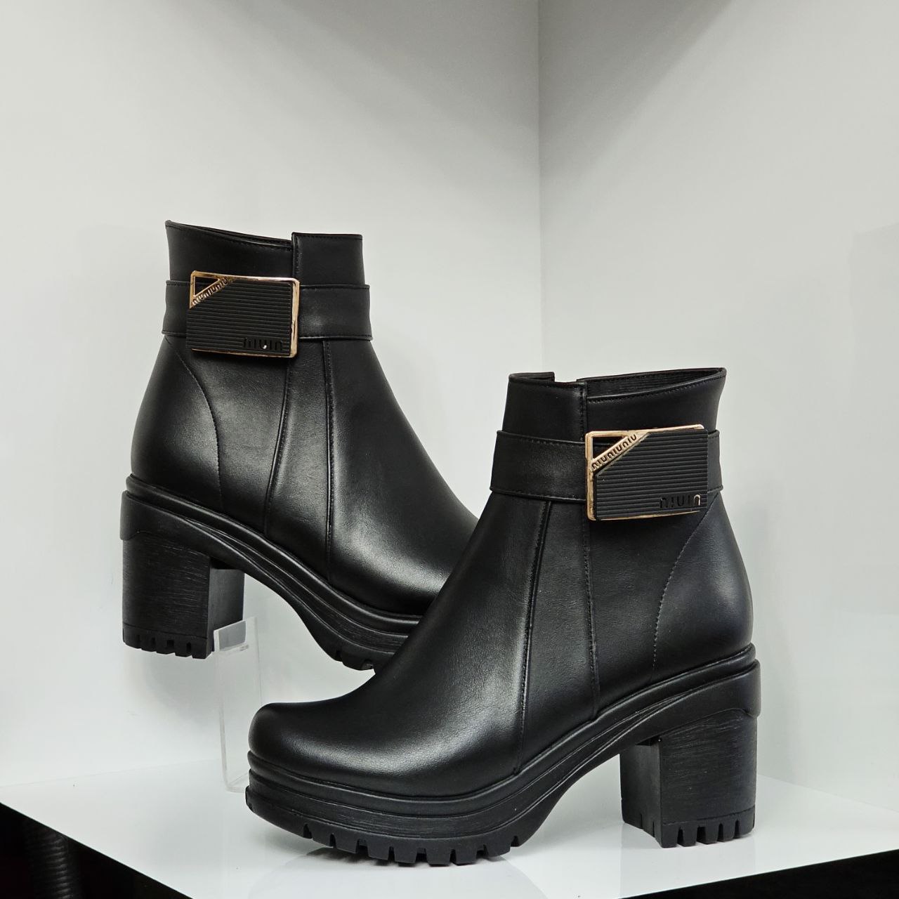 این نیمبوت پاشنهدار زنانه با رویهٔ چرمنما و سگک فلزی چشمگیر، تعادلی از جسارت و راحتی است. پاشنهٔ بلوکی 8 سانتیمتری در کنار زیرهٔ عاجدار عمیق، هم قد شما را بلندتر میکند و هم روی سنگفرشهای لغزنده زمستانی ثبات میبخشد. بند دور مچ با سگک تزیینی، استایلتان را از بوتهای ساده متمایز میکند و رنگ مشکی مات ستکردن با کت پشمی، پالتو کلاسیک یا حتی شلوار جین بوتکات را آسان میسازد. لوپ پشتی نیز پوشیدن آن را بیدردسر میکند—یک همراه شیک برای شبهای سرد و دورهمیهای فصلی.
