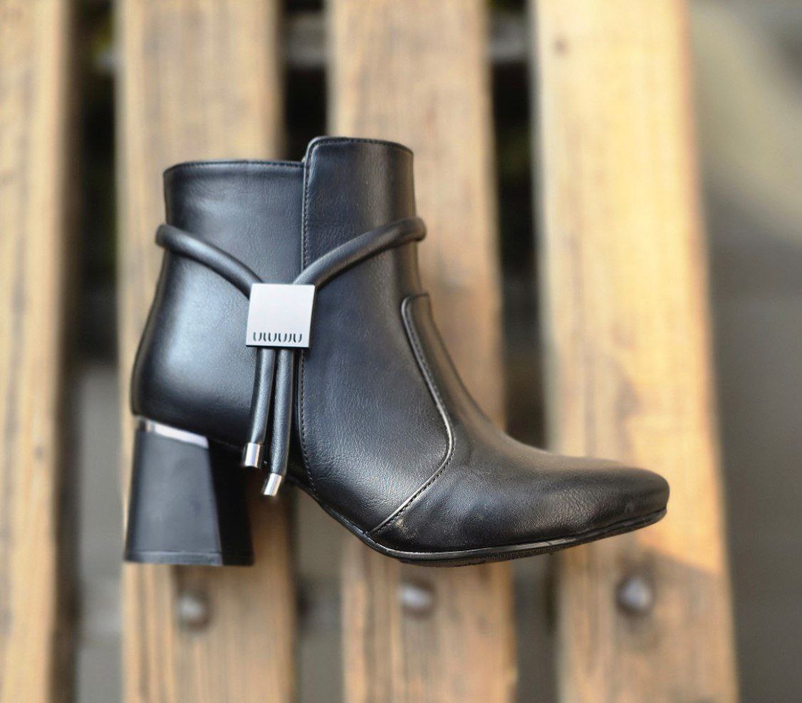 نیمبوت زنانه با رویهٔ چرمنمای مشکی و بند تزیینی روی ساق که با نام «miu» مزین شده، استایل روزمرهٔ شما را به سطحی شیک و منظم میرساند. پنل دوختدار دور قوزک، جلوهای متفاوت به طراحی مینیمال میدهد و پاشنهٔ بلوکی کوتاه، تعادل و راحتی را برای قدمهای طولانی فراهم میکند. درزهای تمیز، نوک گرد و لوپ پشت ساق، پوشیدن را آسان کرده و آن را همراه خوبی برای جین جذب، لگ یا حتی کت پشمی در هوای خنک میسازد.
