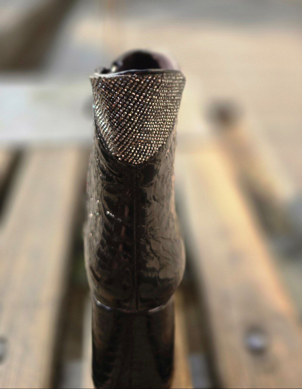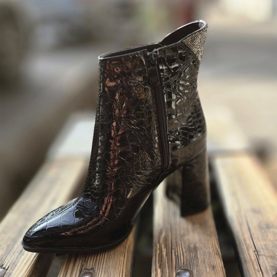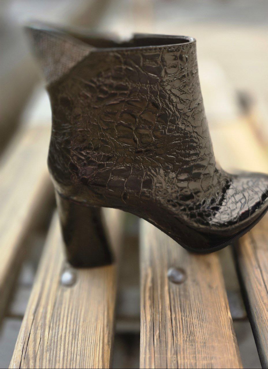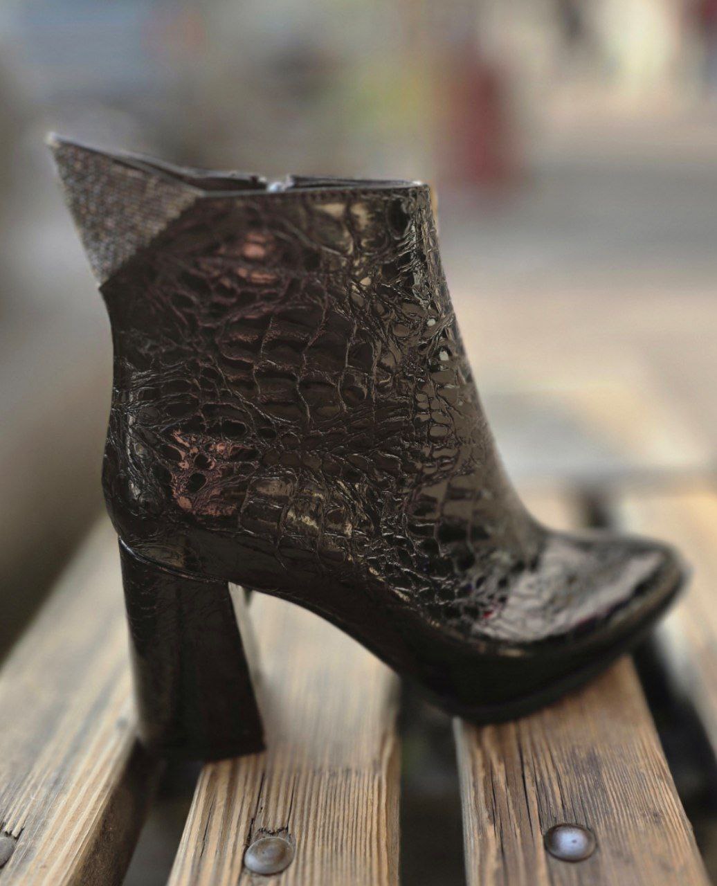 نیمبوت پاشنهدار زنانه با رویهٔ براق طرح پوست کروکودیل و یقهٔ کریستالدوزی، استایل زمستانی شما را در هر مهمانی یا دورهمی به چشم میآورد. پاشنهٔ بلوکی متوسط در کنار نوک کمی تیز، تعادل عالی و قد افزوده را یکجا فراهم میکند. زیپ جانبی پوشیدن را بیدردسر کرده و زیرهٔ لاستیکی، لغزش روی سنگفرشهای خیس را کاهش میدهد. این ترکیب لوکس و جسورانه بهسادگی با شلوار جین جذب، لگ چرمی یا حتی دامن کوتاه ست میشود—انتخابی خیرهکننده برای شبهای سرد.